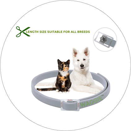 Waggie™ safely releases natural active ingredients through out your pet’s body, pests are repelled by the scent and are gone when in contact with these ingredients or face dire consquences...